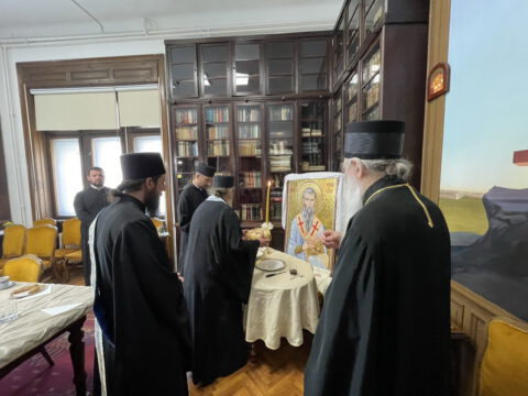 После свете Литургије, у Владичанском двору у Новом Саду освештани су славски дарови у част светог свештеномученика Иринеја Лионског. Чин благосиљања славских дарова извршио је јеромонах Харитон, уз саслужење јерођакона Јустина. Свечаном чину присуствовали су уважени гости и најближи сарадници Преосвећеног владике Иринеја.