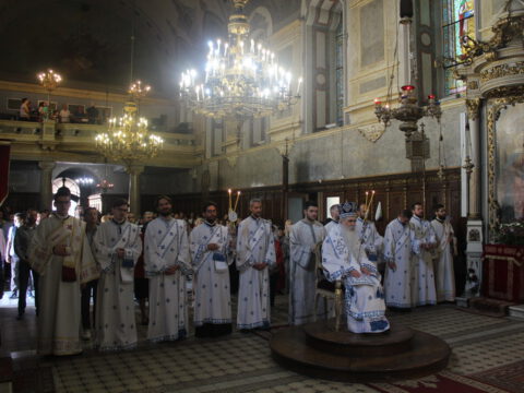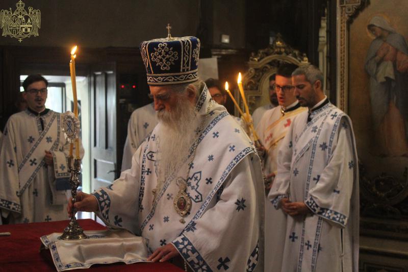 После прочитаног јеванђелског зачала, Преосвећени владика Иринеј је беседио о поучној јеванђелској причи о немилосрдном слузи из Јеванђеља по Матеју. „Спаситељ показује да без обзира на то ко је од нас већи или мањи дужник – тојест ко је пред Богом ревноснији и бољи човек и верник, а ко није – није нам дато да знамо ми и да пресуђујемо ми него да од Њега тражимо опроштај тог нашег духовног дуга, опроштај наших грехова. И Господ на сваки такав вапај, макар колики да је наш дуг, макар да је неотплатив и неисплатив, као што су десет хиљада таланата из ове приче, Он га опрашта одмах, јер је Он бескрајно милосрдан, Он је сâма Сушта Љубав. Свето Писмо нам каже да Господ жели да се сви људи спасу и дођу у познање истине. Он постаје свима све да би спасао свакога, осим оних који одбијају да приме дар спасења. Шта год да учинимо, учи нас реч Божја, морамо имати свест да смо бескорисне слуге, па и оно мало што смо учинили били смо дужни да учинимо. За гордост, за самохвалу, за самодовољство немамо никада разлога ни повода. Кренемо ли тим путем, сигурно је да ћемо бити што даље од Бога, а не што ближе Њему. Бог нас је створио за живот вечни, за вечну радост, за вечно блаженство, за вечну заједницу љубави са Њим, али ми остајемо слободни и можемо употребити, а и злоупотребити ту слободу. Ми, такође, морамо научити да праштамо. То је веома важна порука и, као што смо чули реч Христову, без те спремности на безусловно милосрђе, љубави према свима и свакоме – и према онима који нас воле и према онима који нас мрзе, према свима без изузетка – тешко да се можемо назвати хришћанима и да можемо очекивати милост Божју, а она је потребна свакоме од нас, без изузеткаˮ, истакао је Преосвећени владика Иринеј.