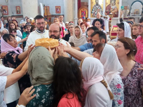 У недељу дванаесту по Педесетници, 12. септембра 2021. године, када молитвено прослављамо празник Сабора српских светитеља, чланови хора при Светосавском храму у Новом Саду, предвођени хоровођом Маријом Боројевић, принели су славске дарове у знак благодарности српским светитељима чији празник хор прославља као своју славу. Литургијским сабрањем началствовао је протопрезвитер Бранислав Мркић, настојатељ храма, уз саслужење братства храма. После заамвоне молитве освећени су славски дарови и том приликом је прота Бранислав упутио топле и очинске речи благодарности свим члановима хора који на свим богослужењима, дневним, недељним и празничним, својим појањем доприносе лепоти богослужења у овом величанственом храму, и подсетио све сабране на духовну величину јерараха Српске Цркве који су својим трудом и жртвом сачували Цркву Христову на овим просторима, а најзаслужнији у сабору светих из нашега рода је свакако Свети Сава који, према речима проте Бранислава, седи у прочељу као благословени оснивач, како Српске Цркве, тако и државе.