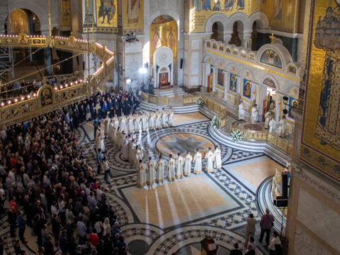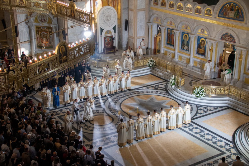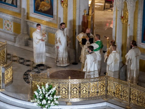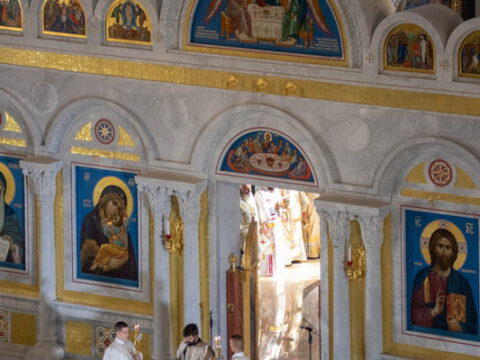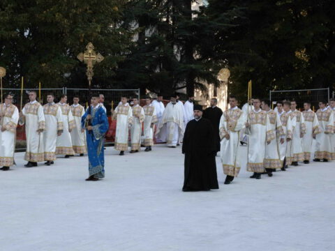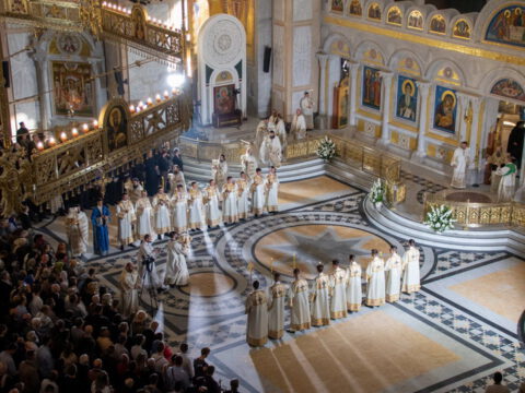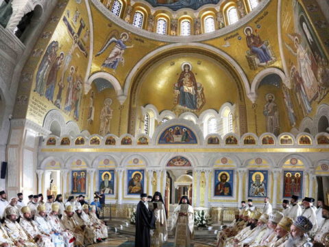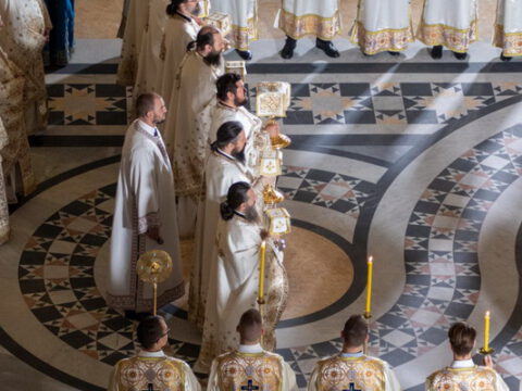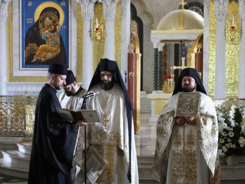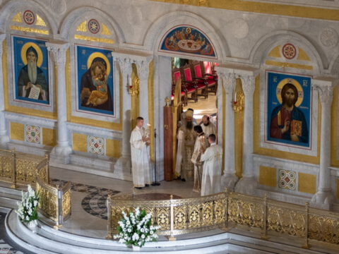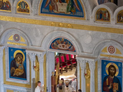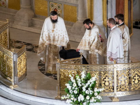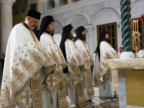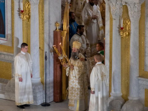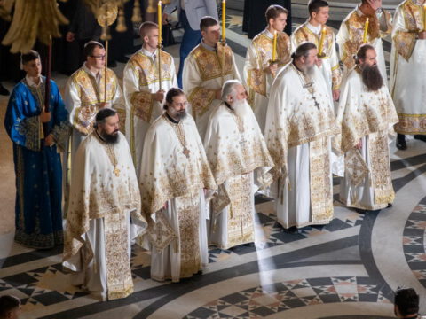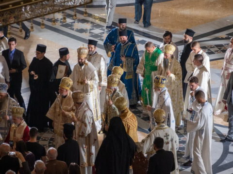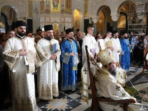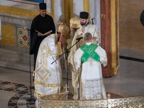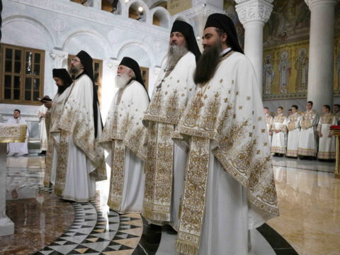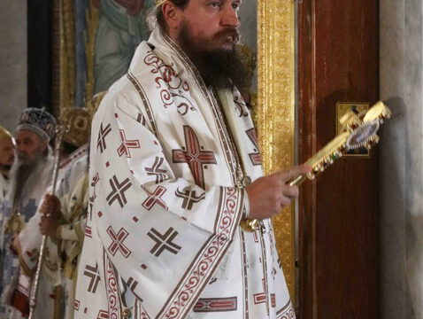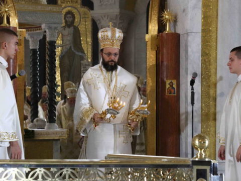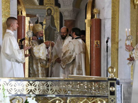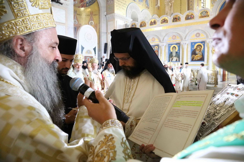 Његова Светост Патријарх српски г. Порфирије началствовао је 19. септембра 2021. године у Саборном храму Светог Саве на Врачару светом архијерејском Литургијом и свечаним чином хиротоније изабраног и нареченог високодостојног архимандрита Дамаскина (Грабежа) у чин Епископа мохачког, викара Епископа бачког