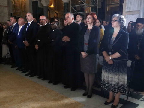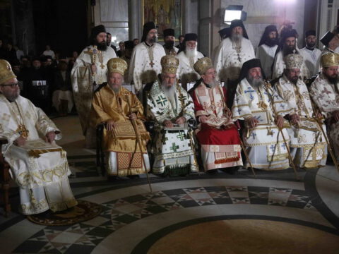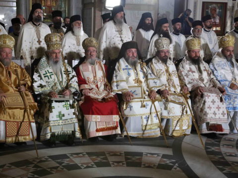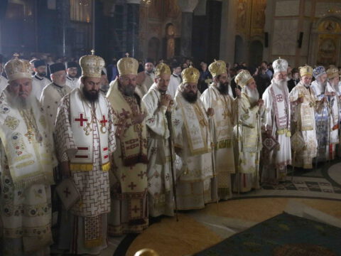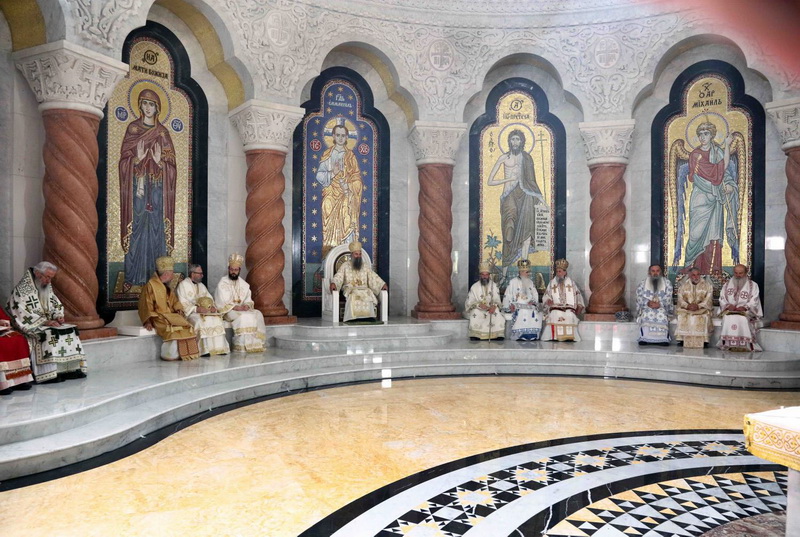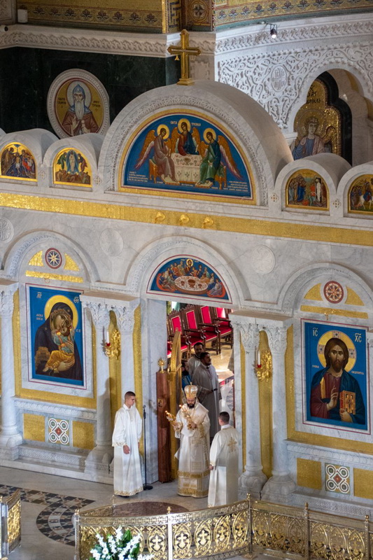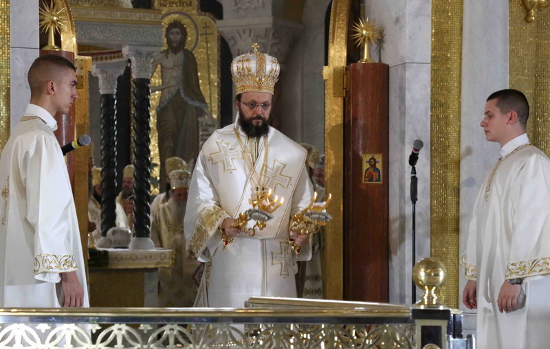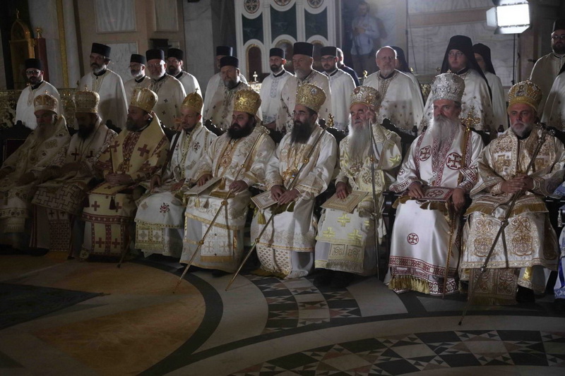 Предстојатељу Српске Православне Цркве саслуживали су Његово Блаженство Архиепископ охридски и Митрополит скопски г. Јован; Преосвећена господа Епископи будимски Лукијан, бачки Иринеј, британско-скандинавски Доситеј, врањски Пахомије, шумадијски Јован, зворничко-тузлански Фотије, милешевски Атанасије, диселдорфски и немачки Григорије, брегалнички Марко, рашко-призренски Теодосије, горњокарловачки Герасим, крушевачки Давид, бихаћко-петровачки Сергије, нишки Арсеније, далматински Никодим, осечкопољски и барањски Херувим, ваљевски Исихије, захумско-херцеговачки Димитрије, моравички Антоније, ремезијански Стефан, диоклијски и изабрани будимљанско-никшићки Методије, топлички Јеротеј, хвостански Јустин, умировљени зворничко-тузлански Василије, умировљени канадски Георгије и умировљени средњоевропски Константин.