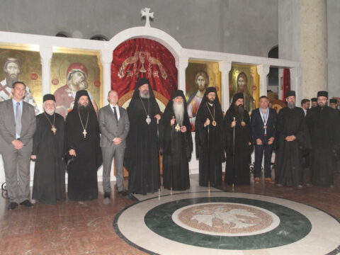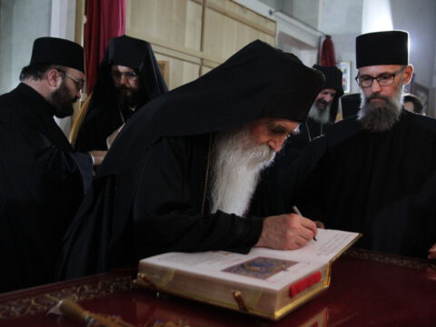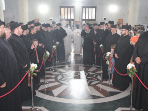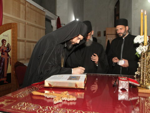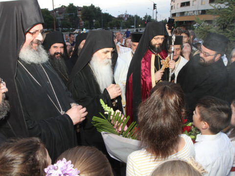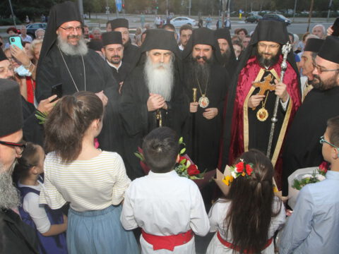 Дочек архијерејâ је уприличен испред храма, где су, у име свештенства, монаштва и верног народа, срдачне речи добродошлице епископима упутили Максим и Дарија Стојисављевић.