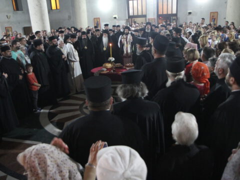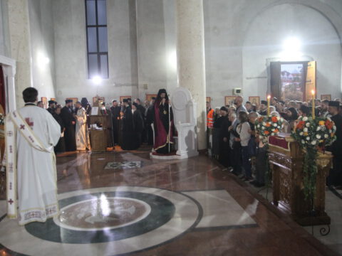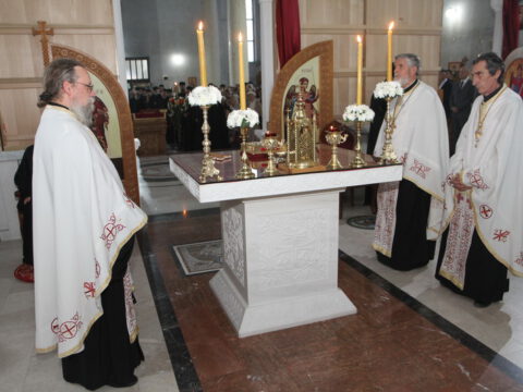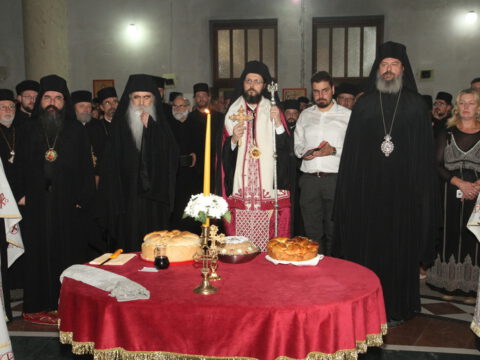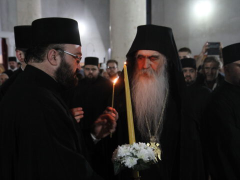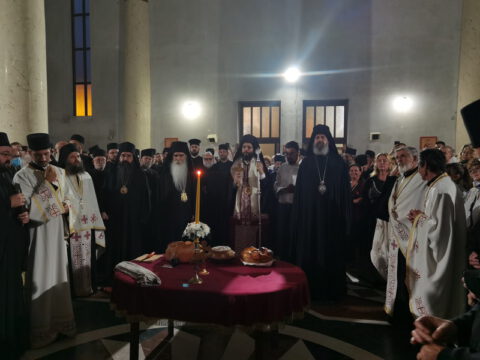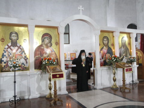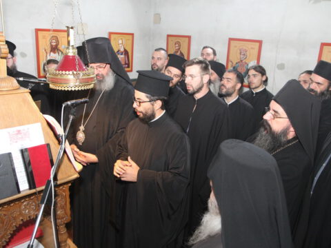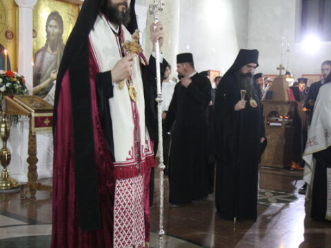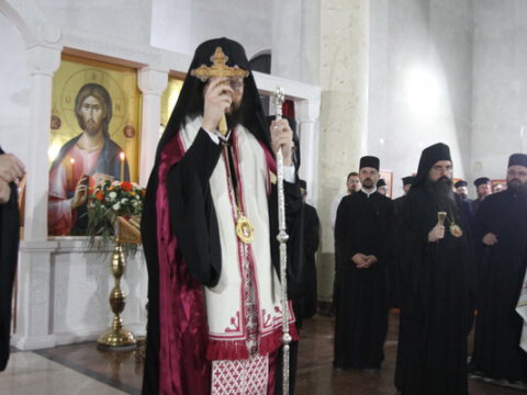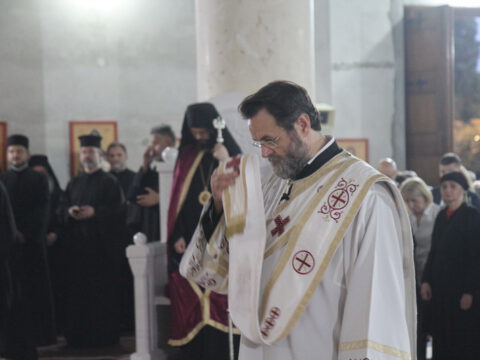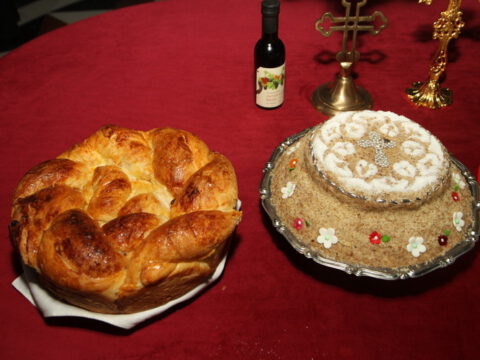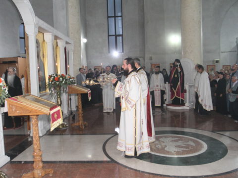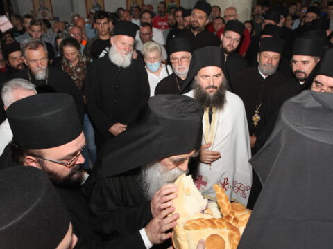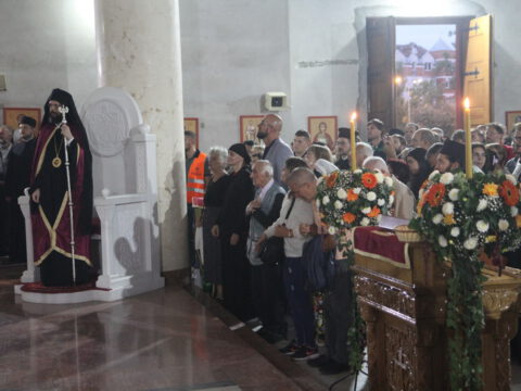 После вечерњег богослужења, Преосвећени владика Дамаскин је извршио чин благосиљања славских дарова.