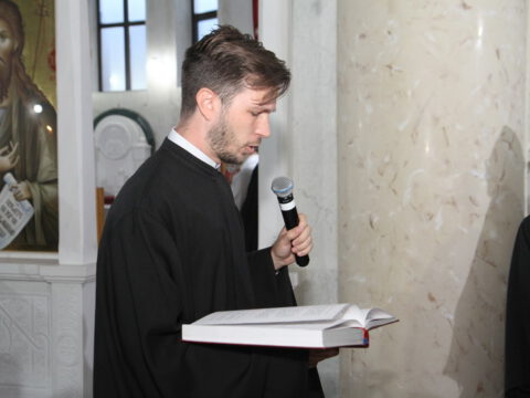 Благољепије празничне вечерње службе украсили су чланови хора Школе црквеног појања при Црквеној општини новосадској Свети Јован Дамаскин, који је предводио ђакон др Владимир Антић, доцент Православног богословског факултета Универзитета у Београду.