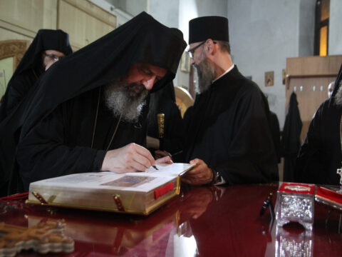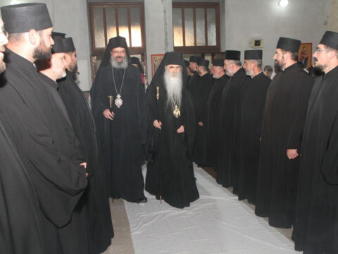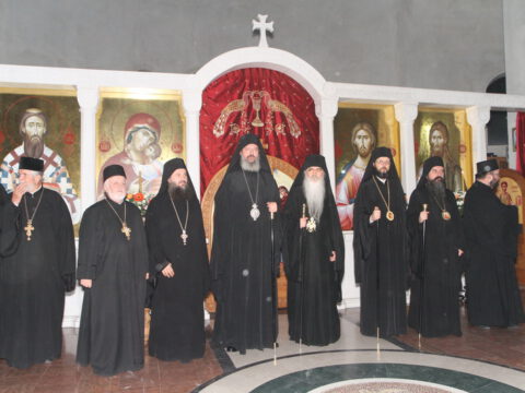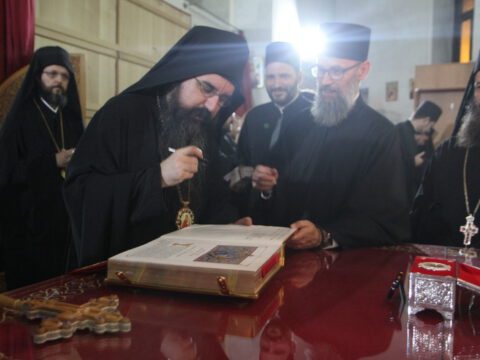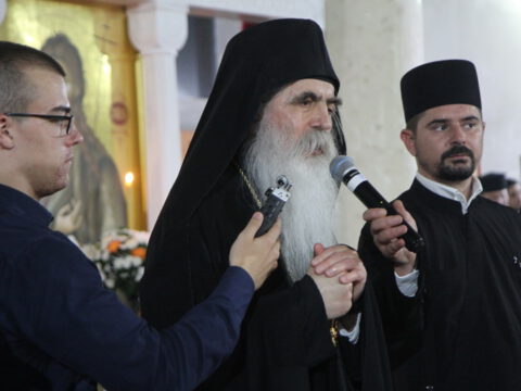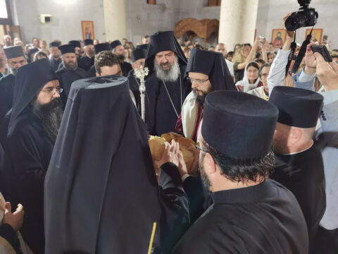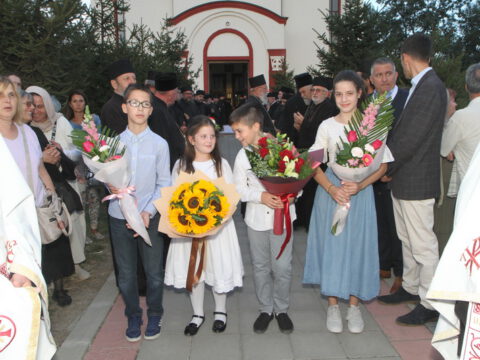 Дочек архијерејâ је уприличен испред храма, где су, у име свештенства, монаштва и верног народа, срдачне речи добродошлице епископима упутили Максим и Дарија Стојисављевић.