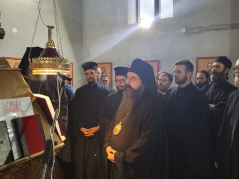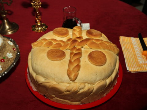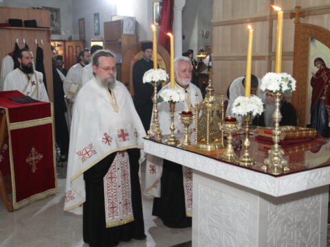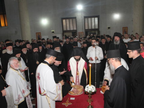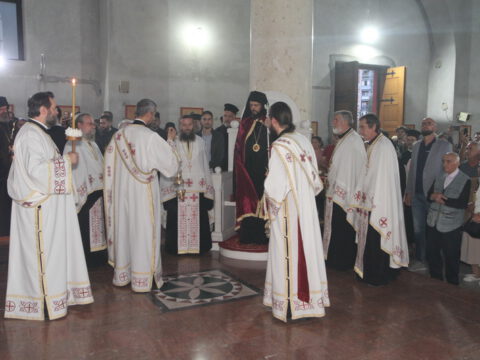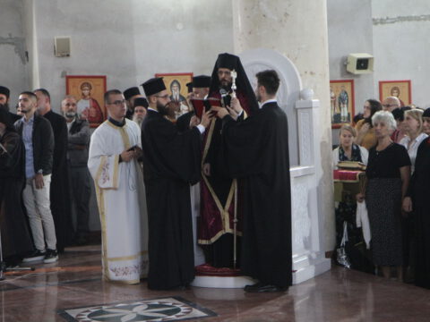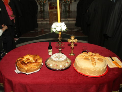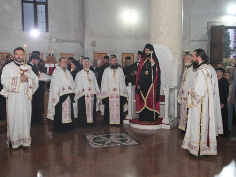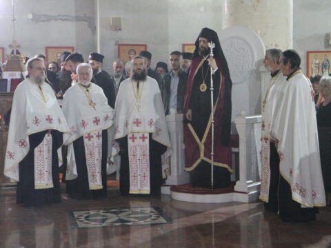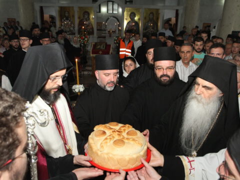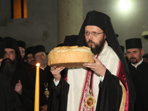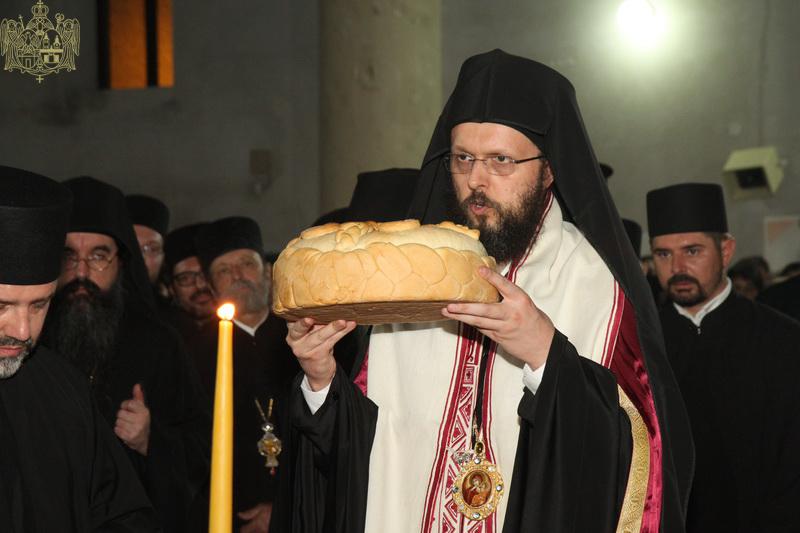 После вечерњег богослужења, Преосвећени владика Дамаскин је извршио чин благосиљања славских дарова.