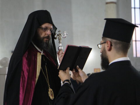 Потом се присутнима обратио нови викар Епископа бачког, Његово Преосвештенство Епископ мохачки г. Дамаскин, који је заблагодарио Преосвећеном владици Иринеју на указаном поверењу, љубави и пажњи. „Надам се да ћу својим трудом и радом, уз Божју помоћ, учинити све како бисмо служили Богу и вама, нашем благочестивом народу. Опростите ми ако због своје слабости будем показивао било шта што не би било достојно чина епископа, јер епископски чин јесте највиши чин који човек може да прими у Цркви. Зато и ја тражим опроштај унапред од свих вас и молим вас за ваше молитве да ми Господ дâ снаге да овај удео, а то јесте службу Божју коју сам добио благодаћу Божјом преко Његове Светости Патријарха српског и Сабора епископâ наше Цркве, изнесем на спасење своје и на спасење народаˮ, поручио је Преосвећени владика мохачки Дамаскин.