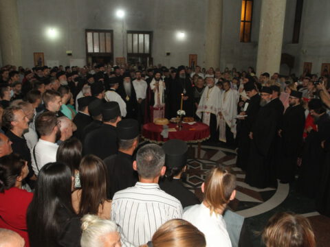 Благољепије празничне вечерње службе украсили су чланови хора Школе црквеног појања при Црквеној општини новосадској Свети Јован Дамаскин, који је предводио ђакон др Владимир Антић, доцент Православног богословског факултета Универзитета у Београду.