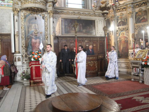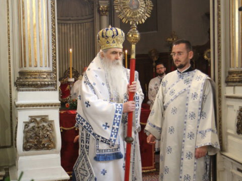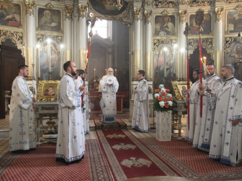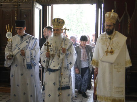 По завршетку свете Литургије, владика Иринеј је честитао празник верноме народу Цркве Божје у Бачкој.