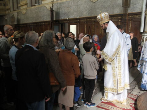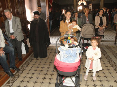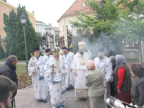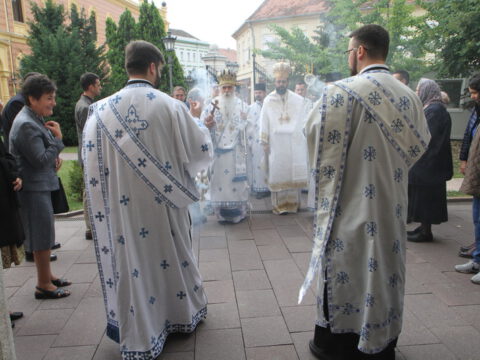 По завршетку свете Литургије, владика Иринеј је честитао празник верноме народу Цркве Божје у Бачкој.