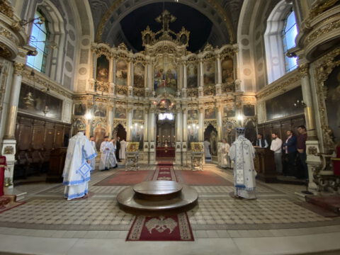 Његово Преосвештенство Епископ бачки г. Иринеј служио је свету архијерејску Литургију у Саборном храму у Новом Саду, у недељу, 13/26. септембра 2021. године. Преосвећеном владици Иринеју су саслуживали Његово Преосвештенство Епископ мохачки г. Дамаскин, свештеници Саборног храма и новосадски ђакони.