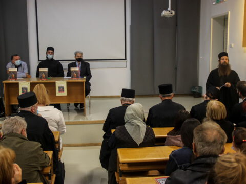 На представљању монографије говорили су: професор др Саша Марковић, декан Педагошког факултета у Сомбору, рецезент; професор др Наташа Гојковић, која се обратила у име госпође Весне Башић, уреднице књиге; протонамесник Срђан Нешић, парох Светојованског храма; и г. Милан Степановић, аутор књиге.