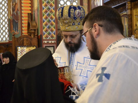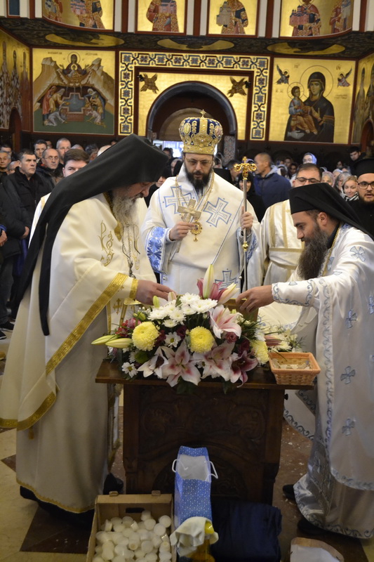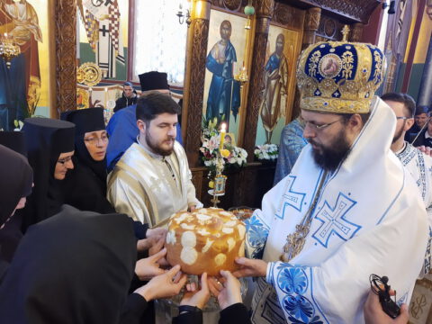 На крају свете Литургије, Преосвећени Владика је осветио славске дарове и пререзао славски колач, припремљен од стране сестара ове свете обитељи, после чега се и обратио вернима пригодном беседом. Светој Евхаристији следила је славска трпеза, са љубављу припремљена од стране домаћина.