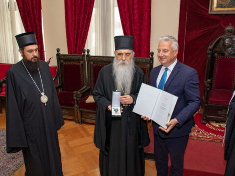 На пригодној свечаности одржаној 28. септембра 2021. године у Патријаршијском двору у Београду, у присуству Његове Светости Патријарха српског г. Порфирија, Епископа топличког г. Јеротеја, Епископа хвостанског г. Јустина, изабраног Епископа марчанског г. архимандрита Саве, шефа Патријарховог кабинета, чланова државне делегациjа Мађарске, као и г. Балинта Пастора, народног посланика и истакнутог представника мађарског народа у Србији, вицепремијер Мађарске г. Жолт Шејмен, у име председника Мађарске г. Јаноша Адера, одликовао је Његово Преосвештенство Епископа бачког г. Иринеја Средњим крстом ордена за заслуге.
