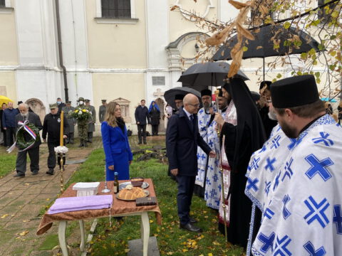 У подножје крста, венце су положили господин Милош Вучевић, градоначелник Новог Сада, и госпођица Кристина Караић, заменик председника Скупштине Града Новог Сада, представници Војске Србије, Савеза удружења потомака ратника Србије од 1912. до 1918. и Удружења потомака ратника Новог Сада из тог периода.
