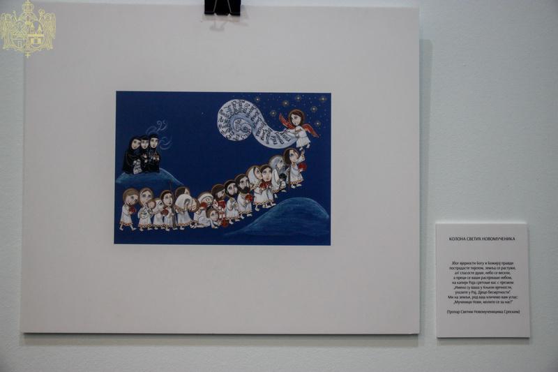 Изложбу је отворио протонамесник Саво Николић, архијерејски намесник сомборски, који је, између осталог, рекао: „Постоји историја, историографија и друге друштвене науке које се баве културом сећања. Ми се бавимо сведочанством вере. Ми веру сведочимо са надом да ћемо, гледајући изображене ликове ових светих Божјих угодника, додатно се оснажити како бисмо били још ревноснији и још приврженији сили Васкрсења Христовог.ˮ