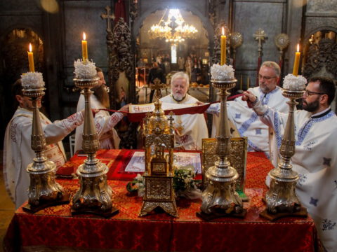 У уторак, 3/16. новембра 2021. године, на празник Обновљења храма светог великомученика Георгија – Ђурђиц, у храму Светог великомученика Георгија у Сомбору, светом Литургијом је началствовао протојереј-ставрофор Миливој Мијатов, умировљени свештеник, уз саслужење протојереја Срђана Перића, протојереја Александра Лазића, протонамесника Бранислава Шијачића и презвитера Александра Шарчанског. После свете Литургије освештани су славски дарови, које је припремила госпођа Љиљана Кнежевић.