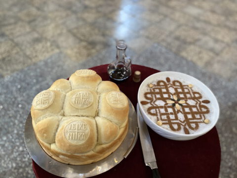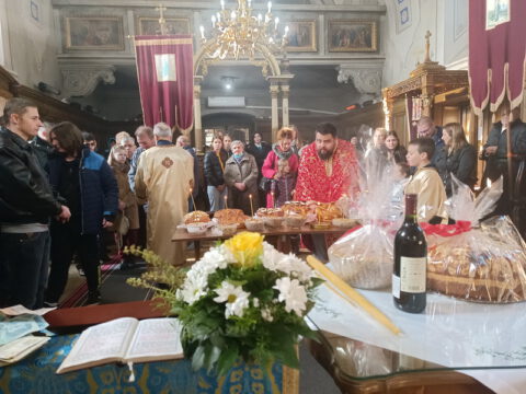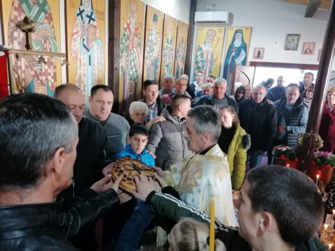 По заамвоној молитви су благосиљани славски дарови, колач и кољиво, које је припремио господин Жељко Вулевић, кум храмовне славе. Залог кумства за следећу годину преузела је госпођица Дијана Куч.