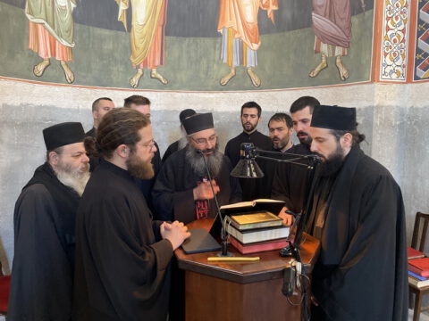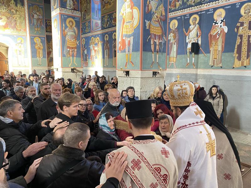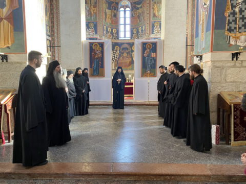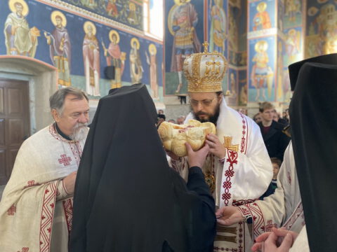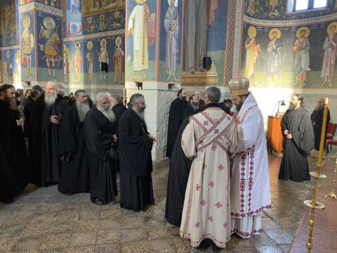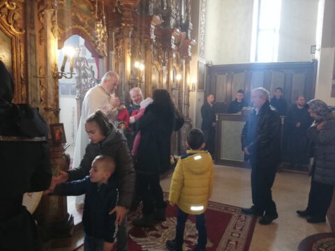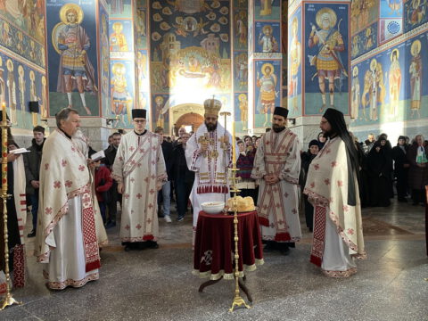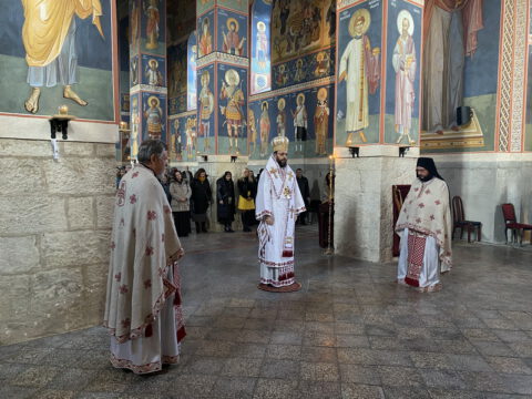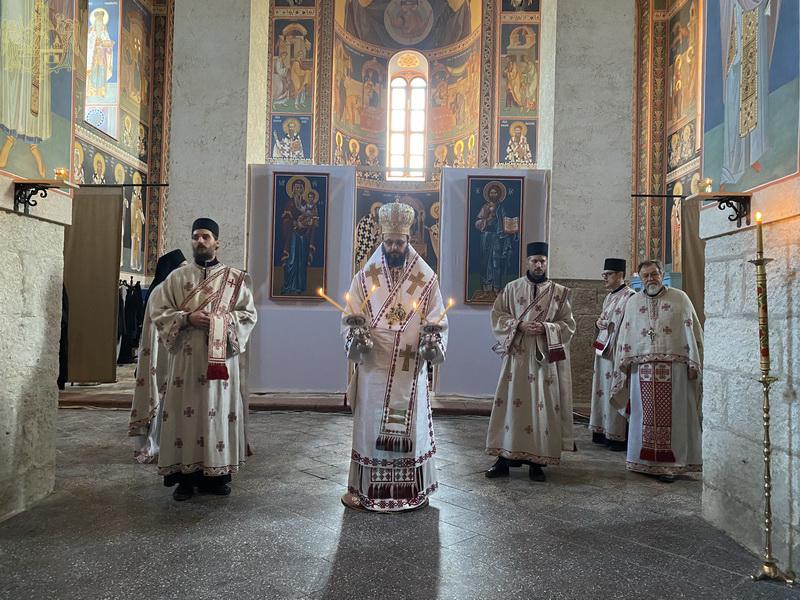 По заамвоној молитви извршен је чин освећења славских дарова, после чега је Епископ мохачки честитао братству манастирску славу, а свима присутнима пожелео је благословен празник.