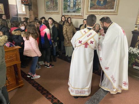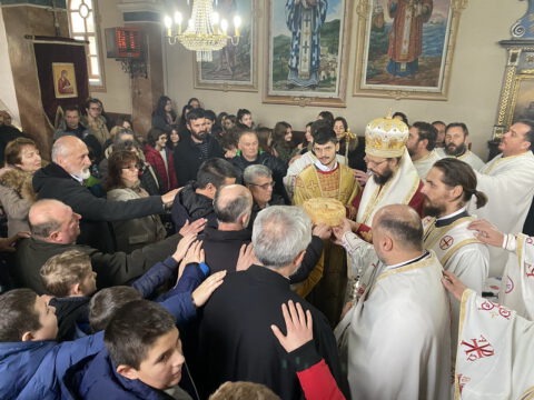 По заамвоној молитви је извршен чин благосиљања славских дарова, које је припремио овогодишњи црквени кум, г. Радуле Перишић. Залог кумства за наредну годину прихватио је г. Дејан Дујковић.