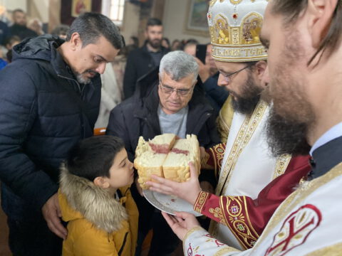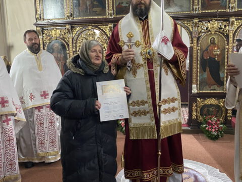 По заамвоној молитви је извршен чин благосиљања славских дарова, које је припремио овогодишњи црквени кум, г. Радуле Перишић. Залог кумства за наредну годину прихватио је г. Дејан Дујковић.