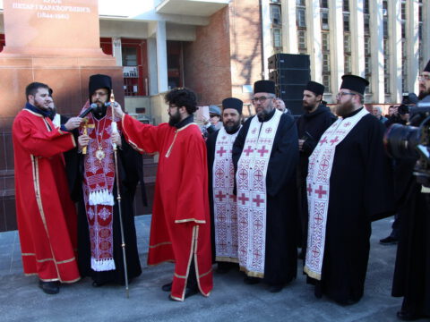 После откривања споменика, Преосвећени владика Дамаскин је служио помен краљу Петру I Карађорђевићу, уз саслужење свештенства и ђаконства Епархије бачке. Беседећи после помена, Епископ мохачки је пренео благослове Његовог Преосвештенства Епископа бачког господина др Иринеја, нагласивши да је краљ Петар I Карађорђевић један од најдивнијих синова нашега народа. „Он је, попут нашег блаженопочившег патријарха Павла, био једна од највољенијих личности у нашем народу. То је заслужио својом скромношћу, својим начином живота, својим витештвом у борбама и зато што се увек ослањао на Господа. Али, оно по чему ћемо га посебно памтити, јесте љубав коју је имао према својој домовини, према својој Отаџбини и према своме народуˮ, поручио је Преосвећени владика Дамаскин.