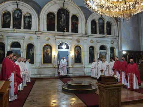 По благослову Његове Светости, Преосвећени владика Фотије се обратио током трпезе и заблагодарио Светејшем Патријарху, Преосвећеним епископима, свештеницима и свештеномонасима, који су узели учешће у молитвеном испраћају новопрестављене слушкиње Божје Стаје Сладојевић.