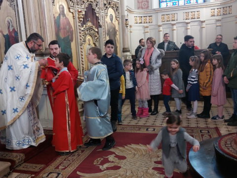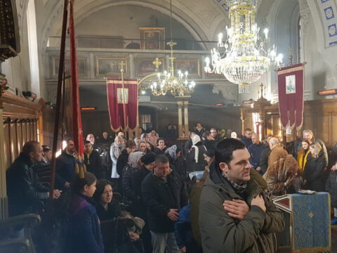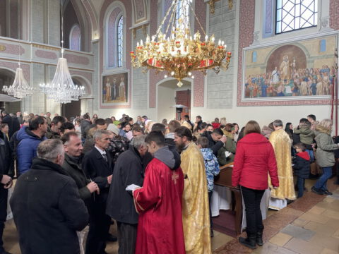 Светој Литургији је присуствовао многобројни верни народ, међу којима и господин Милош Вучевић, градоначелник Новог Сада.