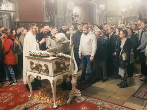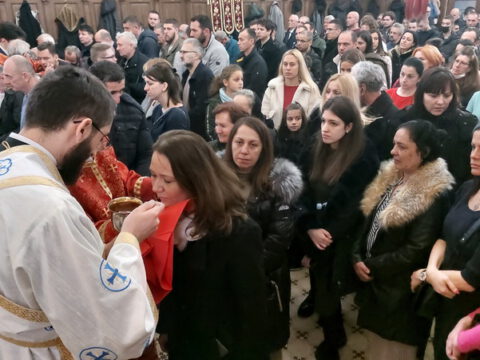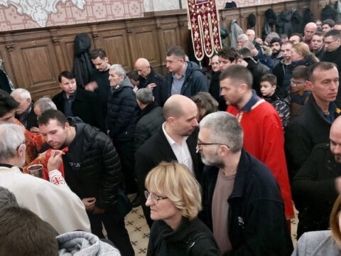 Светој Литургији је присуствовао многобројни верни народ, међу којима и господин Милош Вучевић, градоначелник Новог Сада.