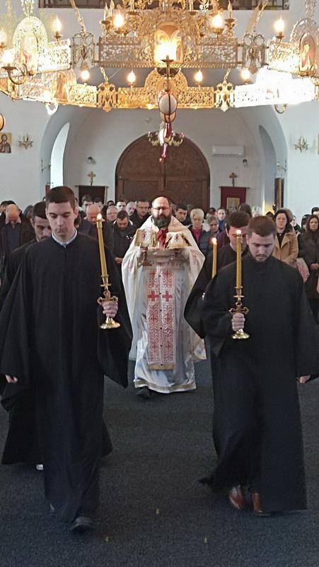 Евхаристијским сабрањем началствовао је протојереј Марко Ђурић, уз саслужење протојереја Живка Сантовца и презвитера Леа Малешевића. После прочитаног јеванђелског зачала прочитана је Божићна посланица Српске Православне Цркве.