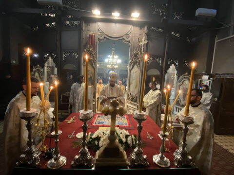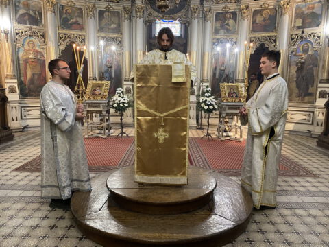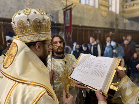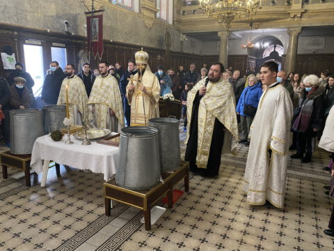 У навечерје Богојављења, на Крстовдан, 5/18. јануара 2022. године, у Саборном храму у Новом Саду, на светој архијерејској Литургији светог Василија Великог началствовао је Његово Преосвештенство Епископ мохачки господин Дамаскин. Преосвећеном владици су саслуживали свештеници и ђакони Епархије бачке.