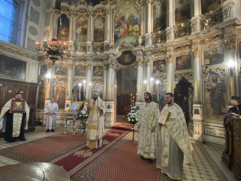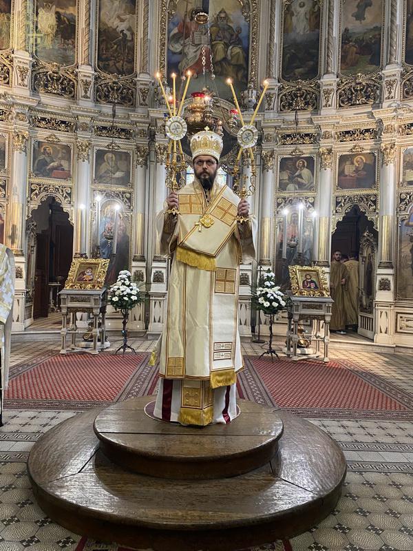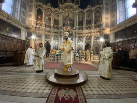 У навечерје Богојављења, на Крстовдан, 5/18. јануара 2022. године, у Саборном храму у Новом Саду, на светој архијерејској Литургији светог Василија Великог началствовао је Његово Преосвештенство Епископ мохачки господин Дамаскин. Преосвећеном владици су саслуживали свештеници и ђакони Епархије бачке.
