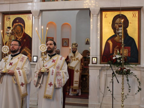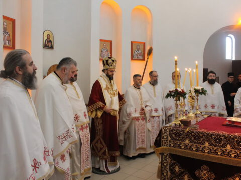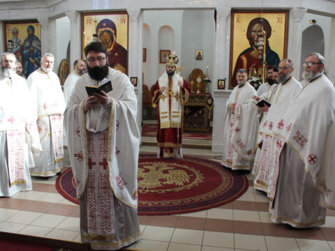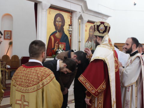 Пред почетак свете Литургије, Преосвећени владика Дамаскин је рукопроизвео у чин чтеца Филипа Поповића, Милована Добриловића и Луку Леђанца.
