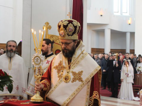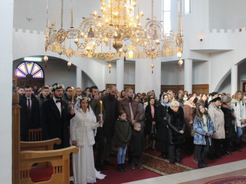 Током свете Литургије извршена је света Тајна брака – чин венчања Михајла Илића и Ане Хавран из Новог Сада.