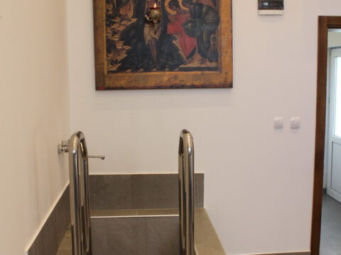 После свете Литургије, Епископ мохачки је извршио чин освећења крстионице за одрасле особе, која се налази у склопу парохијског дома.