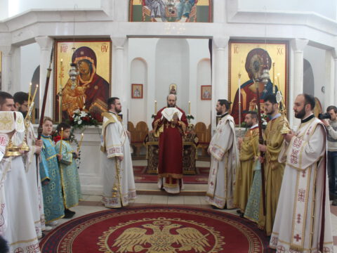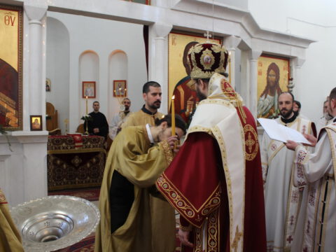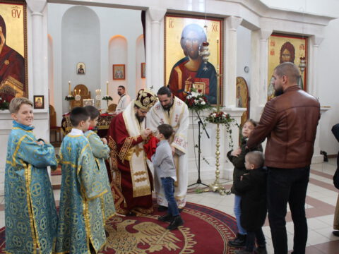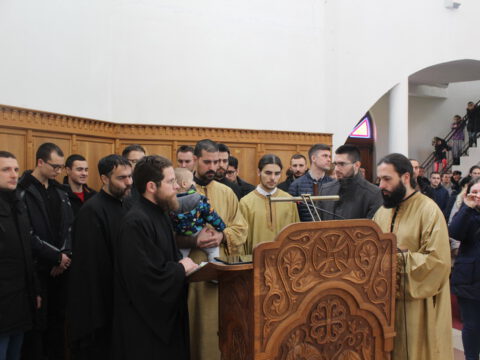 Пред почетак свете Литургије, Преосвећени владика Дамаскин је рукопроизвео у чин чтеца Филипа Поповића, Милована Добриловића и Луку Леђанца.