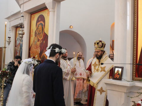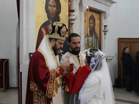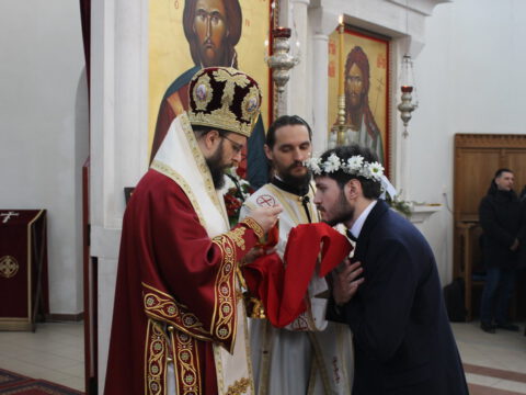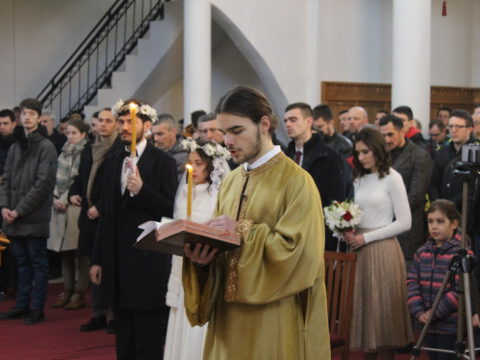 Током свете Литургије извршена је света Тајна брака – чин венчања Михајла Илића и Ане Хавран из Новог Сада.