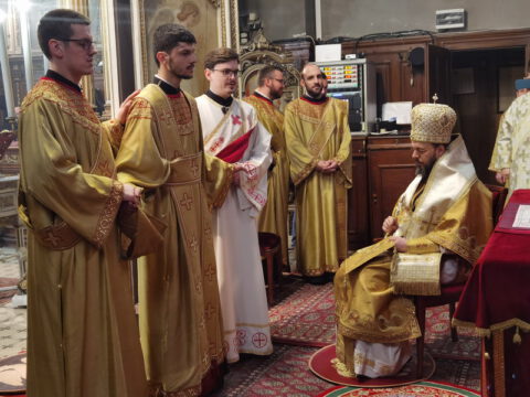 У току свете Литургије Епископ бачки Иринеј је рукоположио ђакона Јована Вачика у чин презвитера, а Епископ мохачки Дамаскин је рукоположио ипођакона Александра Артукова у чин ђакона.