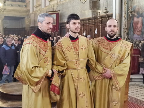 У току свете Литургије Епископ бачки Иринеј је рукоположио ђакона Јована Вачика у чин презвитера, а Епископ мохачки Дамаскин је рукоположио ипођакона Александра Артукова у чин ђакона.