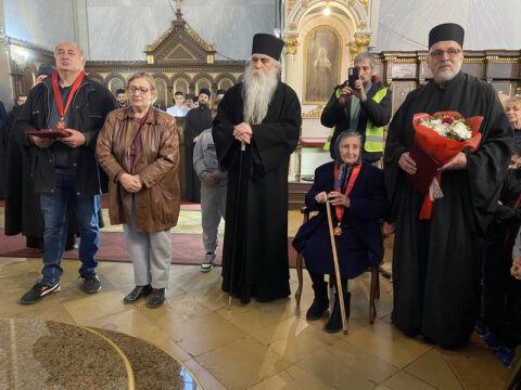 Тетка Видо, хвала вама! Хвала, браћо и сестре! Види се да је Црква храм Божји. Постоје правила, постоје протоколи, али изнад свега постоји љубав и надахнуће. Томе смо се учили овде у чурушкој цркви од тетка Виде, Јованке, многих великих свештеника, да им не помињем имена – Бог зна њихова имена и ви знате. Нека вас све Господ благослови!