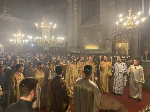 У Светоуспенској цркви у Новом Саду, у навечерје Суботе акатиста, 26. марта / 8. априла 2022. године, служено је свеноћно бденије и у наставку света Литургија.