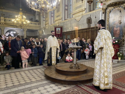 Литију свештенства и верног народа Божјег, предводио је Његово Преосвештенство Епископ мохачки господин Дамаскин. Празнично бденије после литије, служио је презвитер Јован Вачик, уз саслужење ђакона Александра Артукова. Празничном бденију су молитвено присуствовали Преосвећена господа епископи бачки др Иринеј и мохачки Дамаскин.