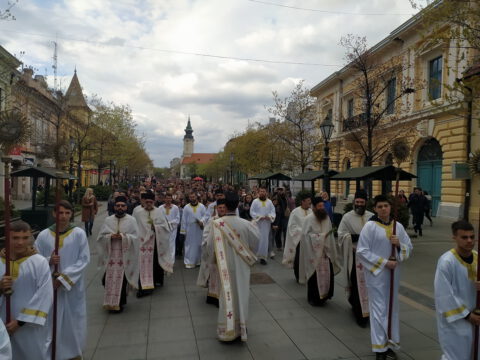 Нови Сад – Mолитвена прослава Лазареве суботе у Саборном храму у Новом Саду почела је 3/16. априла 2022. године служењем празничног јутрења и свете Литургије. Прослава је настављена поподне, чином освећења врбових гранчица и свечаном литијом, уз учешће многобројног верног народа Божјег. Литија се кретала од Саборног храма кроз улице: Змај Јовину, Модене, Илије Огњановића, Константина Данила, Игњата Павласа и Дунавску.