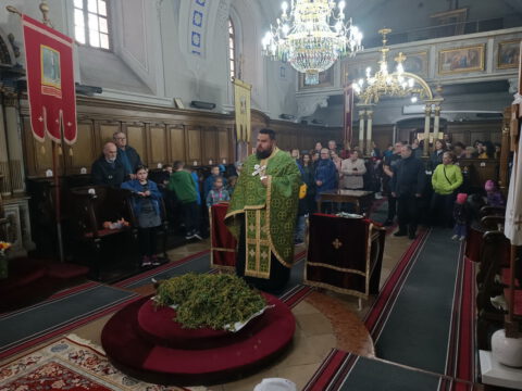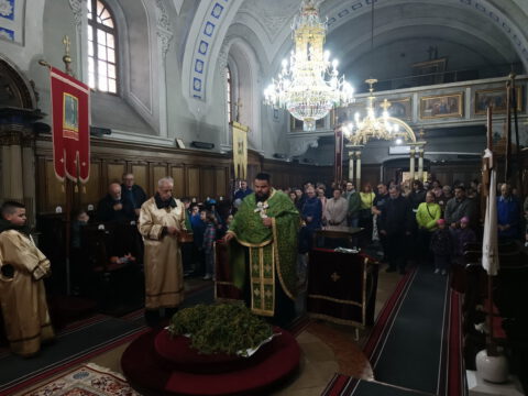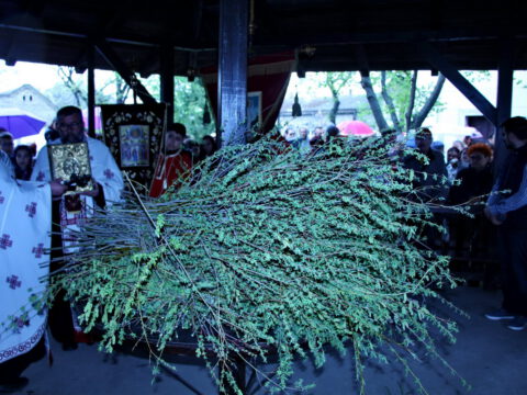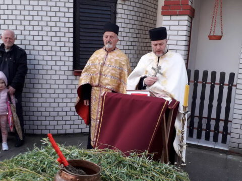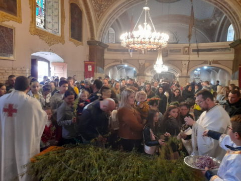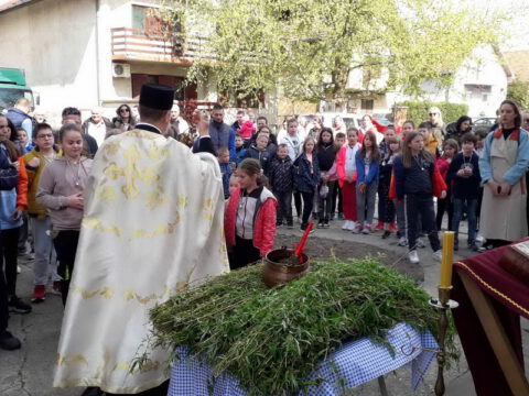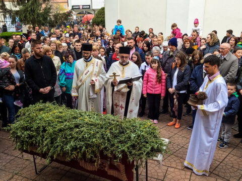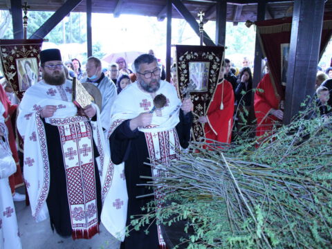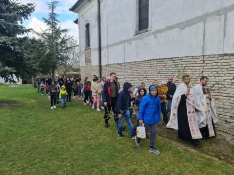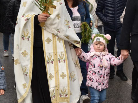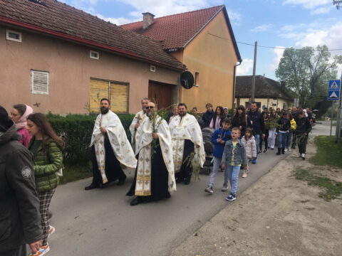 У присуству многобројног верног народа и деце, после молитвеног чина, освештане су врбове гранчице и извршен је трократни опход око светог храма.