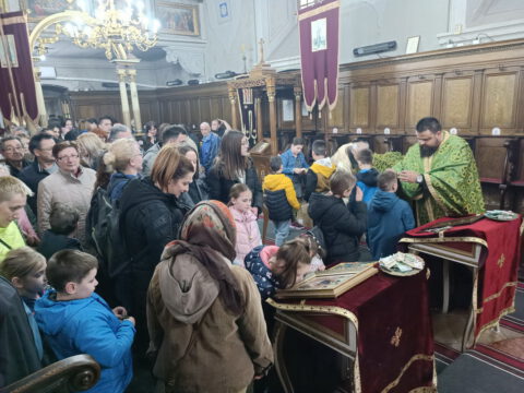 На празник Цвети, на светој Литургији, храм је био испуњен верним народом, нарочито децом.