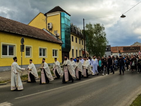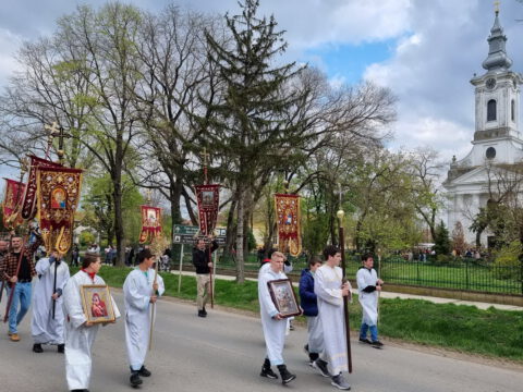 Алмашки храм у Новом Саду – Субота праведног Лазара, 3/16. априла 2022. године, празник Васкрсења Лазара Четвородневног и Уласка Господњег у Јерусалим, свечано је прослављен у Алмашком храму у Новом Саду. После освећења врбових гранчица, свештеници су предводили свечану литију која се кретала кроз више улица Подбаре, уз учешће културно-уметничког друштва „Вила“ и многобројног народа Божјег, парохијана овог светог храма. Литију су предводили протојереј Бране Миловац, настојатељ Алмашког храма, протојереј Бранко Вујиновић и јереј Александар Поповић. После свечаног опхода служено је празнично бденије.