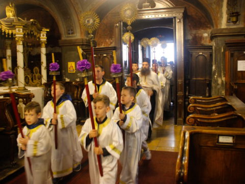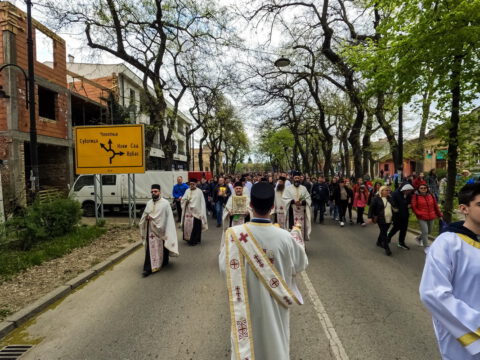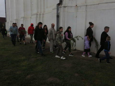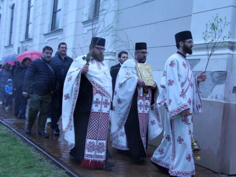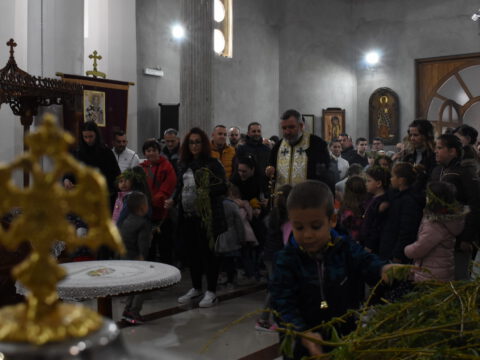 После вечерњег богослужења, у присуству верног народа и многобројне деце, освештане су врбове гранчице и извршена је литија око храма.