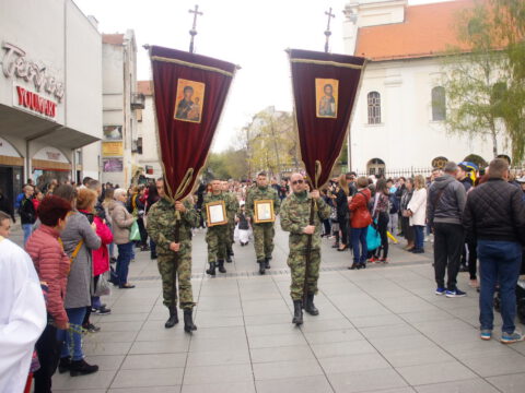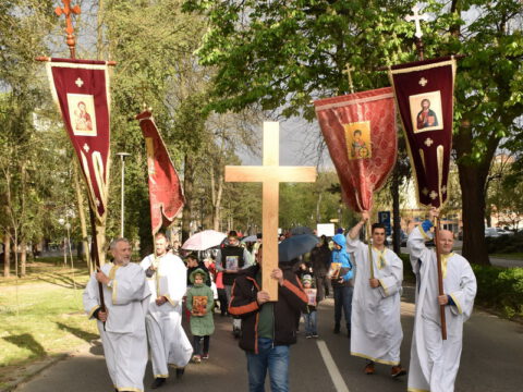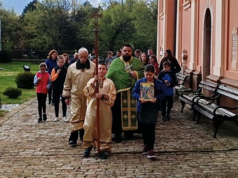 Алмашки храм у Новом Саду – Субота праведног Лазара, 3/16. априла 2022. године, празник Васкрсења Лазара Четвородневног и Уласка Господњег у Јерусалим, свечано је прослављен у Алмашком храму у Новом Саду. После освећења врбових гранчица, свештеници су предводили свечану литију која се кретала кроз више улица Подбаре, уз учешће културно-уметничког друштва „Вила“ и многобројног народа Божјег, парохијана овог светог храма. Литију су предводили протојереј Бране Миловац, настојатељ Алмашког храма, протојереј Бранко Вујиновић и јереј Александар Поповић. После свечаног опхода служено је празнично бденије.