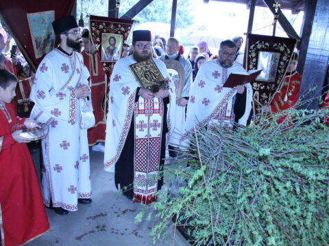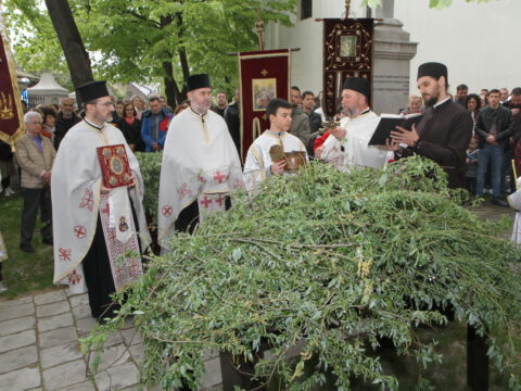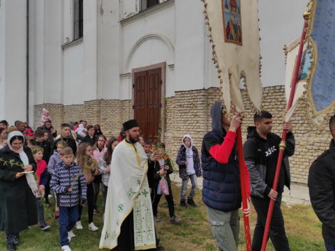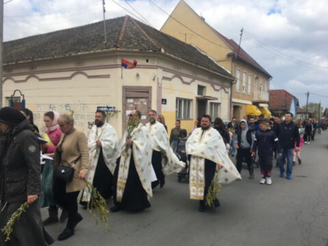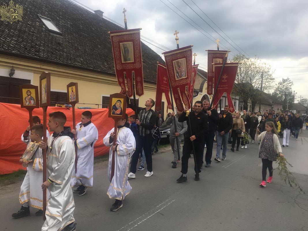 У присуству многобројног верног народа и деце, после молитвеног чина, освештане су врбове гранчице и извршен је трократни опход око светог храма.