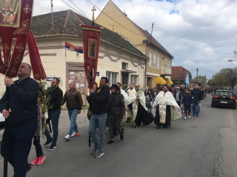 Апатин и Пригревицa – У суботу, 3/16. априла 2022. године, православни житељи Апатина су литијом и свечаном вечерњом службом отпочели прославу празника Уласка Господа Исуса Христа у Јерусалим – Цвети. Литија у којој су учествовала многобројна деца кретала се од богомоље Преподобне матере Параскеве до храма Сабора светих апостола. Свечаном вечерњом службом началствовао је протонамесник Жељко Васић, парох апатински.